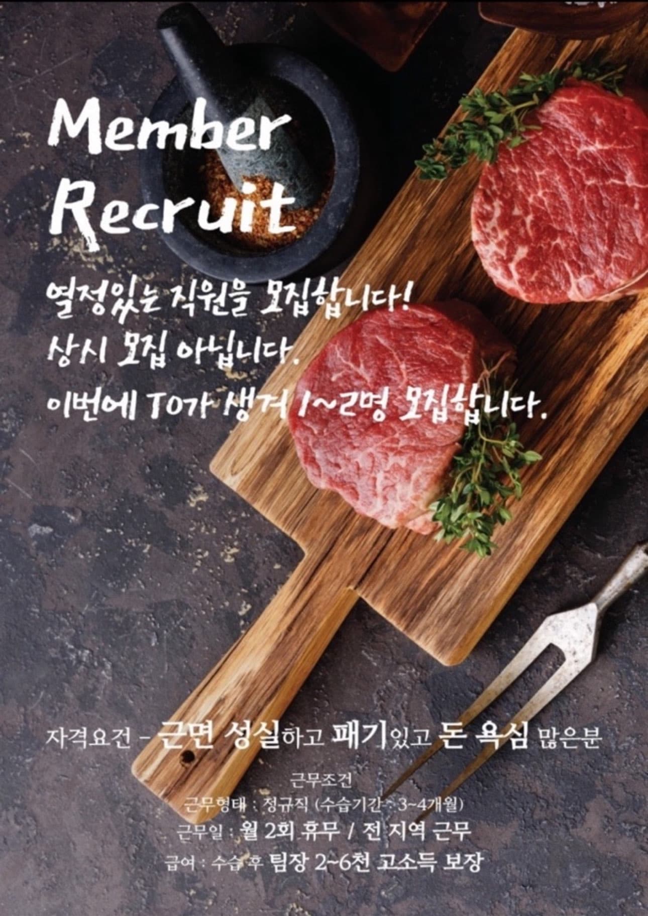 필독사항 4개월수습기간(직원생활기간) 급여: 직원 생활 기간 동안 월급250만원 4개월 이후 팀장 됩니다. 나가기전에 직원 생활 하실때 직원 한명(부사수) 구해주시고 인수 인계 교육 잘 해주고 팀장 나가시면됩니다.(개인사업자) 이건 필수적으로 해야되는 룰입니다. 월기본 수입 최소 1000만원 이상 팀장 능력에따라 수입 천차만별 *< 팀장되고 직원들 구해놓고 잘교육 시키시고 일안하고 오토로 돌릴수 있습니다. 이게 제일 메리트가 있습니다. 직원 잘구하셔서 매대 4개 가지고 있는 팀장도 있습니다. 이분은 한달에 순수익 1억정도 정산 받습니다. 아 혹시 직원을 못구하면 어떻게 하냐고 물어보시는데 지원팀장 제도가 있어서 팀장매대에 일하시면서 직원 구하시면되요 거기서 뽑으시는 매출 나눠줍니다 굶어 죽을일은 없습니다 대형마트(*플러스,롯*마트,*마트 등..) 에서 팀을 꾸려서 행사하는일 입니다. 누구나 다 할수 있습니다. 물건납품해주는 바이어 화사에서 마트자리를 잡아주면 그곳에 가서 1주 또는 2주싸이클로 마트 옮겨다니며 행사합니다. 마진율은 30% -45% 여기에는 고기값 야채값 등 재료값 대형마트 수수료 모두 제하고 남는 마진율입니다. 발주하는 비용도 그냥 물건 받아서 팔면 알아서 그냥 정산이 되서 나옵니다. 초기자본 같은거 필요없습니다. 나중에 매대 저울대 기타 집기류 살돈만 있으면 되는데 이것도 없으시면사드리고 나중에 팀장나가서 정산 받으시면 갚아주시면됩니다. 매출은 평균적으로 제일 안되는 매장을 가도 평일 200만원 주말 300-400 정도 매출나옵니다 잘되는 매장은 평일 300-500 주말 600-1000만원 까지 나옵니다. 제일 안되는 매장 기준으로 주말 포함 단순히 200만원씩만 매출 나왔을때 마진율 30프로 하면 수익이 1800정도 나옵니다 여기서 직원들 월급주고 숙박비 식비 계산하면 남는게 1000만원이 조금 넘는돈이 팀장 순수익이 됩니다. 참고로 팀장이 한달에 1000만원 밖에 못벌면 바보 소리듣습니다. 이렇게 계산 한게 최소 금액이고 일년에 명절있는달 두달은 훨씬 매출 잘나오고 매출 잘나오는 매장 돌아가면서 가기때문에 열심히만 하면 실제로 훨씬잘 벌수 있습니다. 매대 2개 오토로 돌리고(출근안함) 매출 잘찍는 팀장님들 한달에 5-6천찍 정산받습니다. 다만 4개월 수습기간(직원생활기간) 이교육기간을 팀장나가서 매출 잘 뽑을수있게 잘배우면서 잘버텨야합니다. 일하는 시간도 마트 오픈부터 마감까지 일하는경우가 대부분이라. 정신적으로 육체적으로 매우 힘듭니다. 1-2주마다 매장이 바뀌기때문에 모텔 여관생활 해야합니다. 한달동안 집에 못간적도 있긴합니다. 마트 문여는 시간 전에 대략 9시 출근에 마트 마치는 시간 저녁 11 시까지 일합니다. 매일 이렇게 일하지는 않습니다. 쉬는날은 마트 쉬는날한달에 두번 쉬고 특별한날 있으면 말씀 하시면되고 일수 120일을 채워야하기때문에 너무 쉬어도 팀장 다는 시간이 늦어지닌깐 저는 팀장 빨리 달려고 그냥 거의 쭈욱 달렸습니다. 솔직히 진짜 힘들어요 고객들한테 호객도 해야하고 고함도 치셔야되고 자존심 상하는일도 있고 버티세요 다만 직원 생활 4개월 하실때 부지런히 잘배우시고 매출 뽑을줄 알아야 팀장 나가서도 돈벌수있어요 이거 4개월해서 저정도 수입이면 거저라고 생각합니다. 돈많이 버는데 이정도는 버티실수 있습지자 **팀장도 있습니다. 마인드 많이 바뀌게되고 그동안 가지고 믿고 하라는대로 부지런히 하기만하면 누구나 다 할수있습니다 특별한 능력이 필요한 일이 아닙니다 부지런히 열심히하는사람이 많이 버는 일입니다. 마음의준비 하고 오셔야합니다. 할수있습니다. 돈 달라고도 안하고 돈드는일 아니고 몸만 있으면 되고 돈욕심, 열정만 있으면 됩니다. 와서 직접 눈으로 보시고 도전해보시길바랍니다. 할수 있습니다. 이걸로 인생이 바뀌신분들 많습니다. 4o대 이상분들 죄송합니다